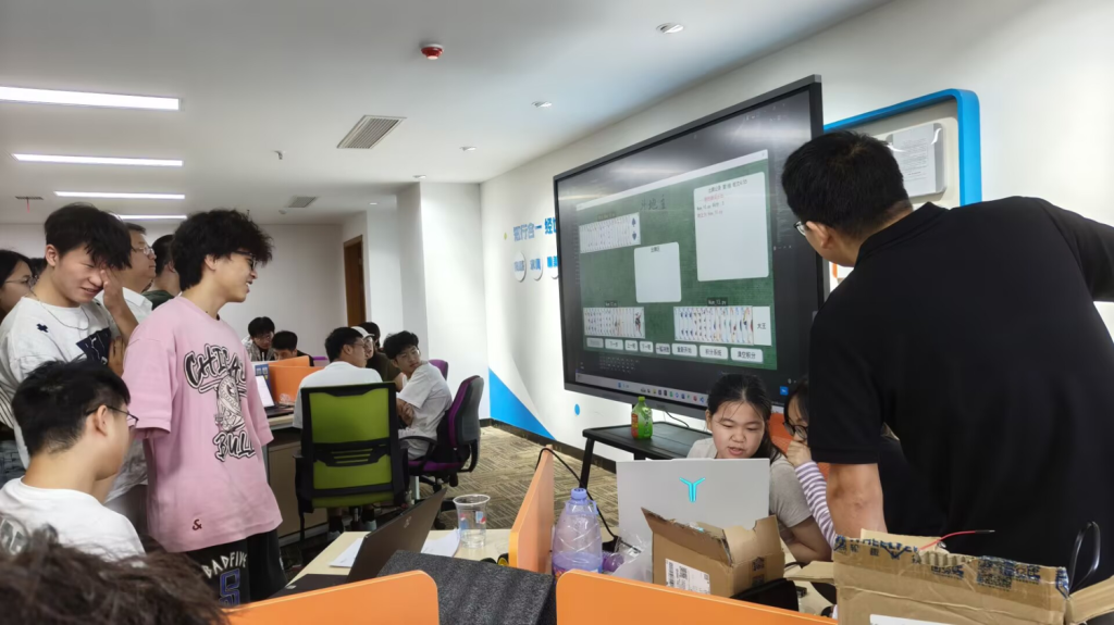 走进科创班的课堂,最直观的感受就是“项目即课程”。大屏幕上,“AI玩家”正在虚拟牌桌上激烈交锋,这正是科创班“算法与程序设计”课的期末考场。课程导师喻罡介绍,考核并非笔试或只提交算法程序,而是让所有算法“同台竞技”,通过多轮循环赛后,凭实战结果评定成绩。