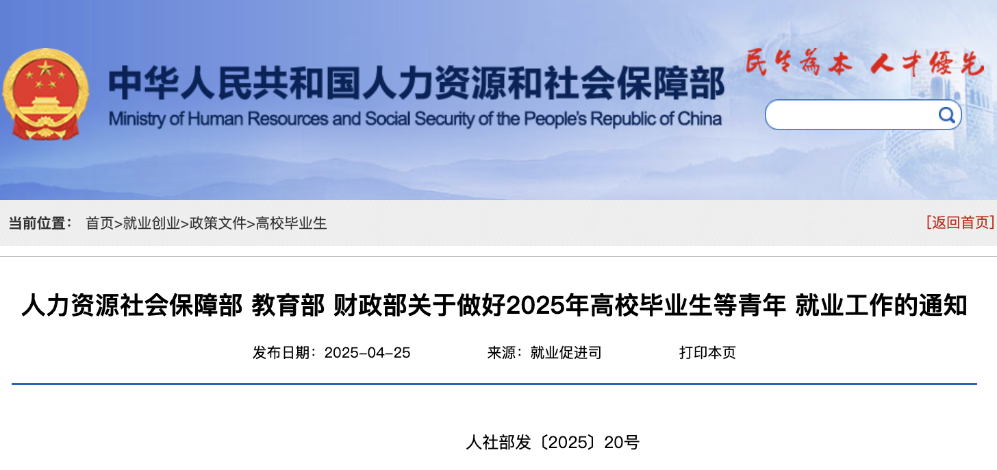 全文 人力资源社会保障部 教育部 财政部关于做好2025年高校毕业生等青年 就业工作的通知